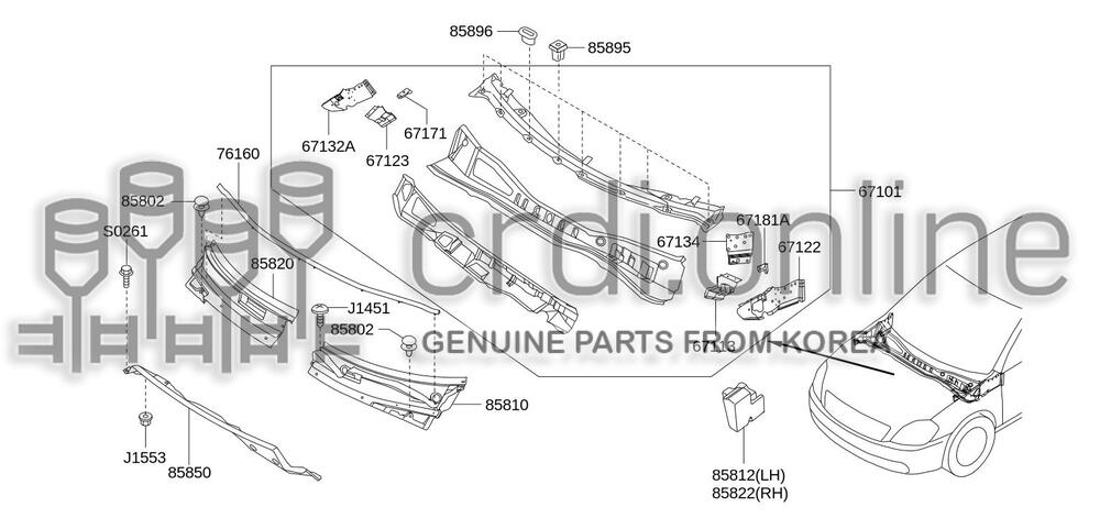 BRACKET ASSY-COWL TOP EXTENSIONRH 67123-52000 6712352000 67123 52000